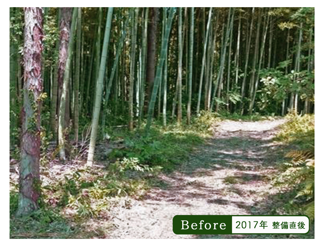 ですがこの場所も8年前は、大地が弱り硬く水を吸えず、木々は弱り、薄暗くあれた竹林だったそうです。